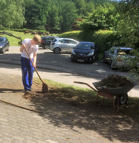 Neben zahlreichen Vorarbeiten wie Rasenmähen, Hecken und Bäume beschneiden, was in Vorarbeiten durch engagierte Schützen erledigt worden war, ging es heute an viele andere Dinge. Ob auf dem Boden oder in der Höhe auf dem Dach, alles wurde angepackt.