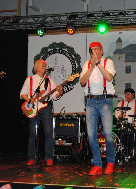 Für weitere musikalische Untermalung sorgte die Band SIXPACK. Gemeinsam mit den Jecken im Publikum wurde sich zu den Klängen des Bobfahrerlieds in den Bob gesetzt und Bewegung in die Menge gebracht.